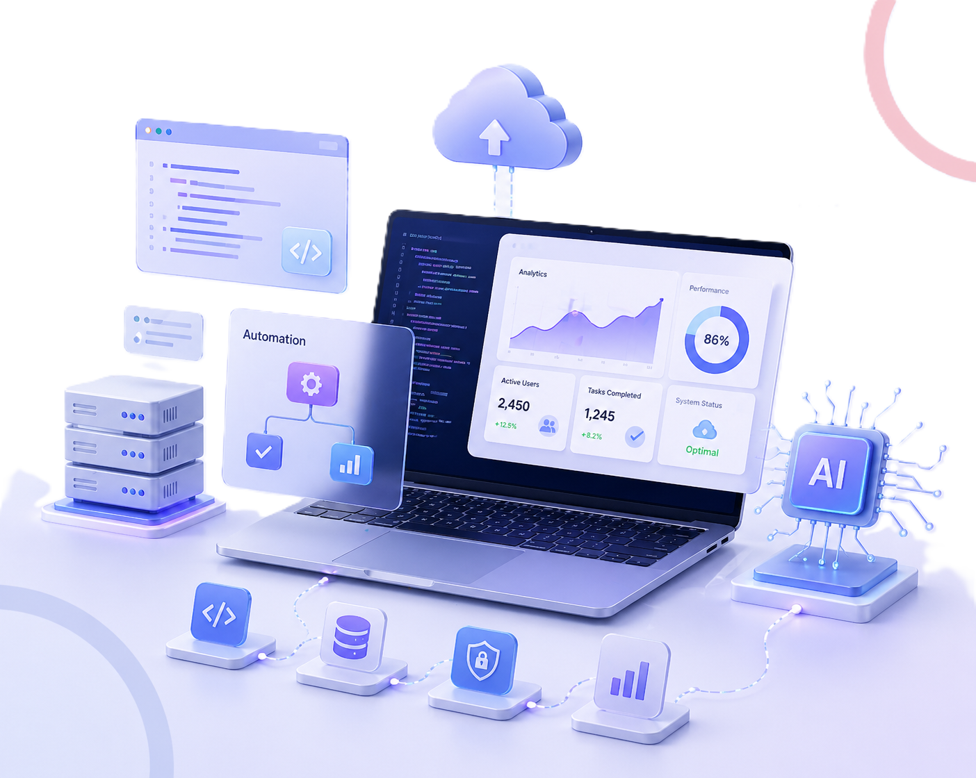 We create custom web, software, and AI solutions designed specifically for your business needs. From startups to enterprises, we help you build powerful digital systems that drive growth, efficiency, and innovation.